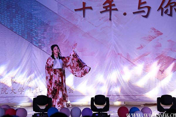 本网讯(记者 周凡 袁丽 王金燕)4月25日晚7点,“十年,与你同行” 我校第十届社团文化节在大学生活动中心二楼热烈举行。音乐社、茶社、汉服社、思辨雅颂社等十余个社团依次登场,带来的节目各具特色,尽展我校社团风采。