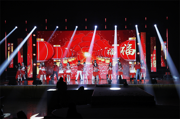 最令人惊喜的是学校全体辅导员带来的节目《APT》,平日里严肃认真的他们在舞台上大秀歌喉与舞技,展现出别样的风采,赢得台下师生的欢呼与喝彩,成为晚会超级大彩蛋。“因为我们是一家人,相亲相爱的一家人。”晚会在悠扬温馨的《相亲相爱的一家人》旋律中圆满落幕。随后,师生们一同移步至图书馆广场,点燃象征吉祥如意、红红火火的熊熊篝火,共庆新年。