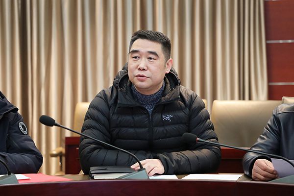武汉市公安局文化保卫局二大队长薛涛发表讲话。