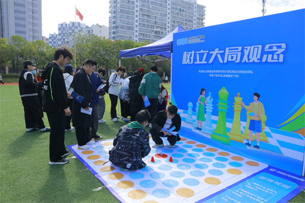 上午10时,足球场上人头攒动,处处洋溢着热烈而欢快的氛围。同学们手持“生涯探索地图”活动手册,穿梭在各项目处,在轻松愉悦的游戏互动“打卡”中,悄然完成了一场对自我认知、学业规划与职业探索的深度之旅。