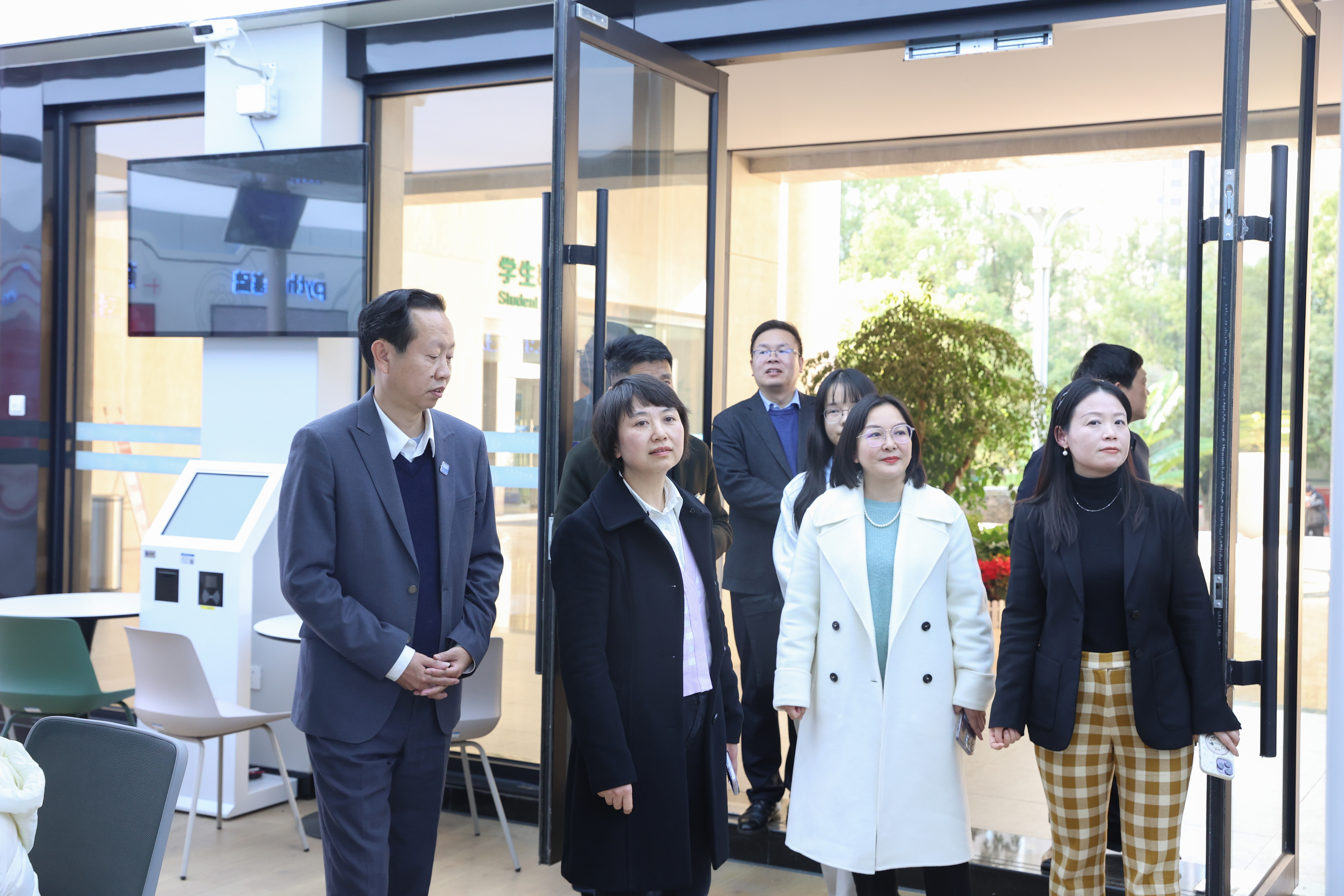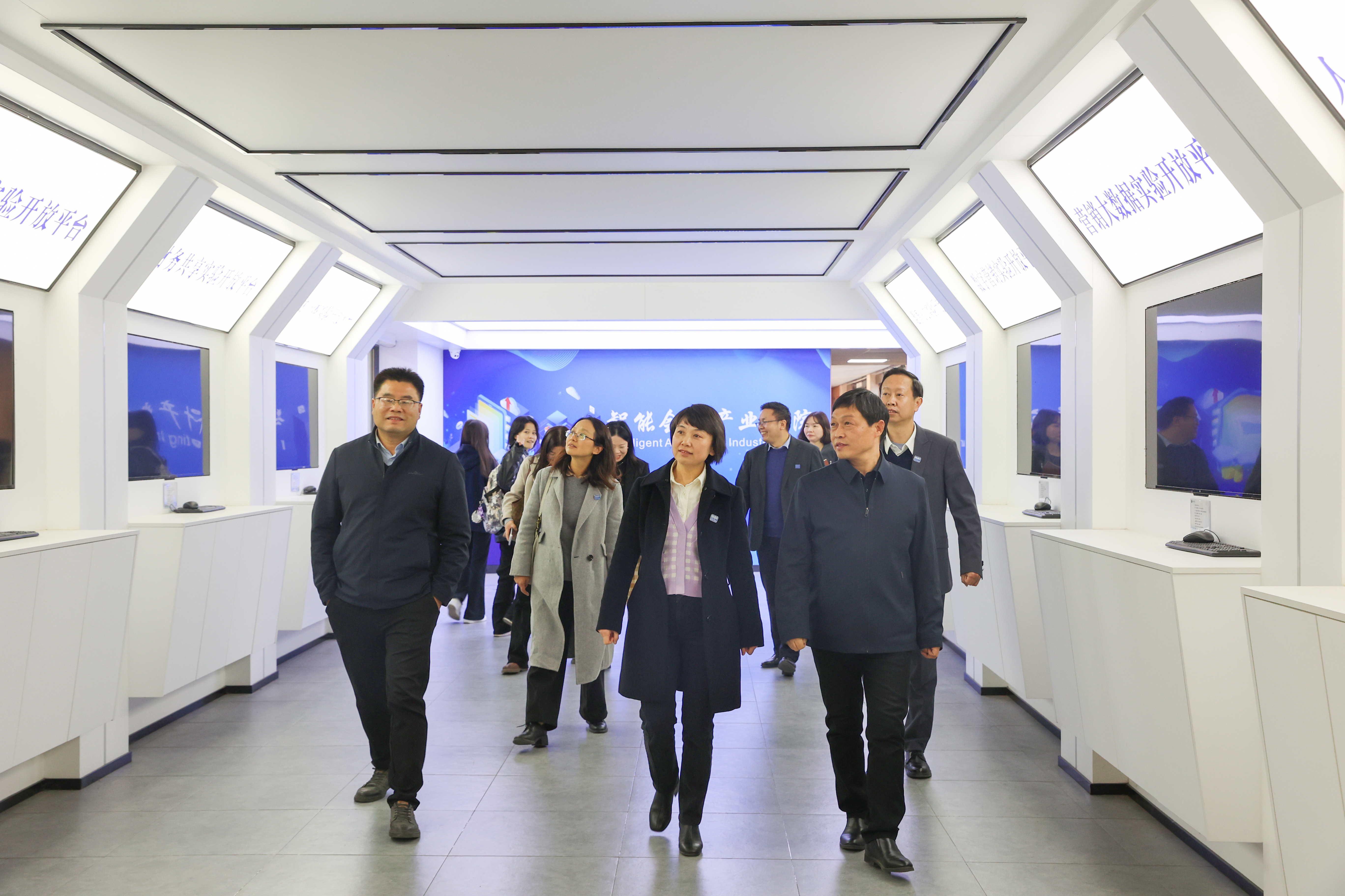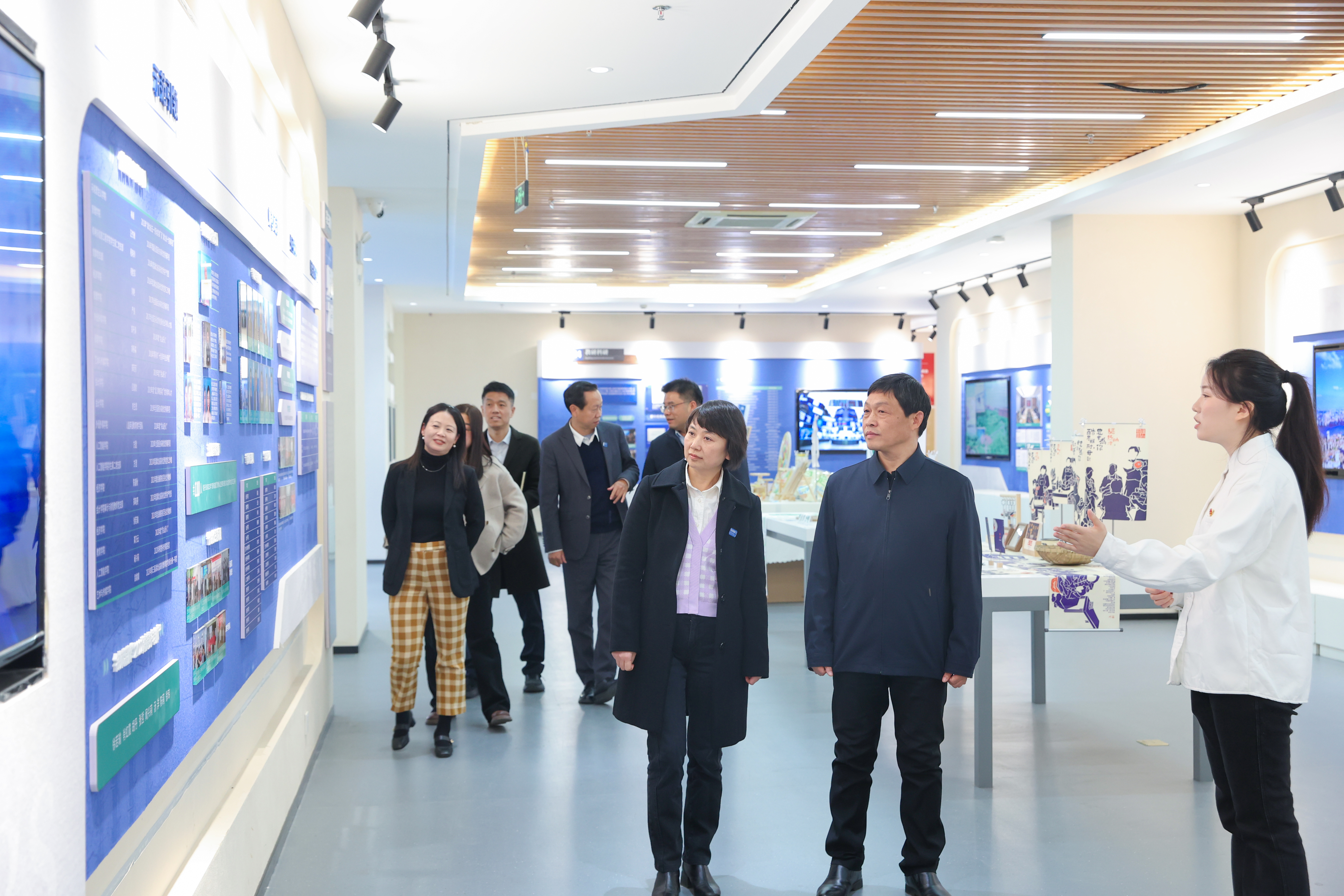 会后,在杨世雄等领导陪同下,王长华一行参观了校史馆、图书馆和部分产业学院。