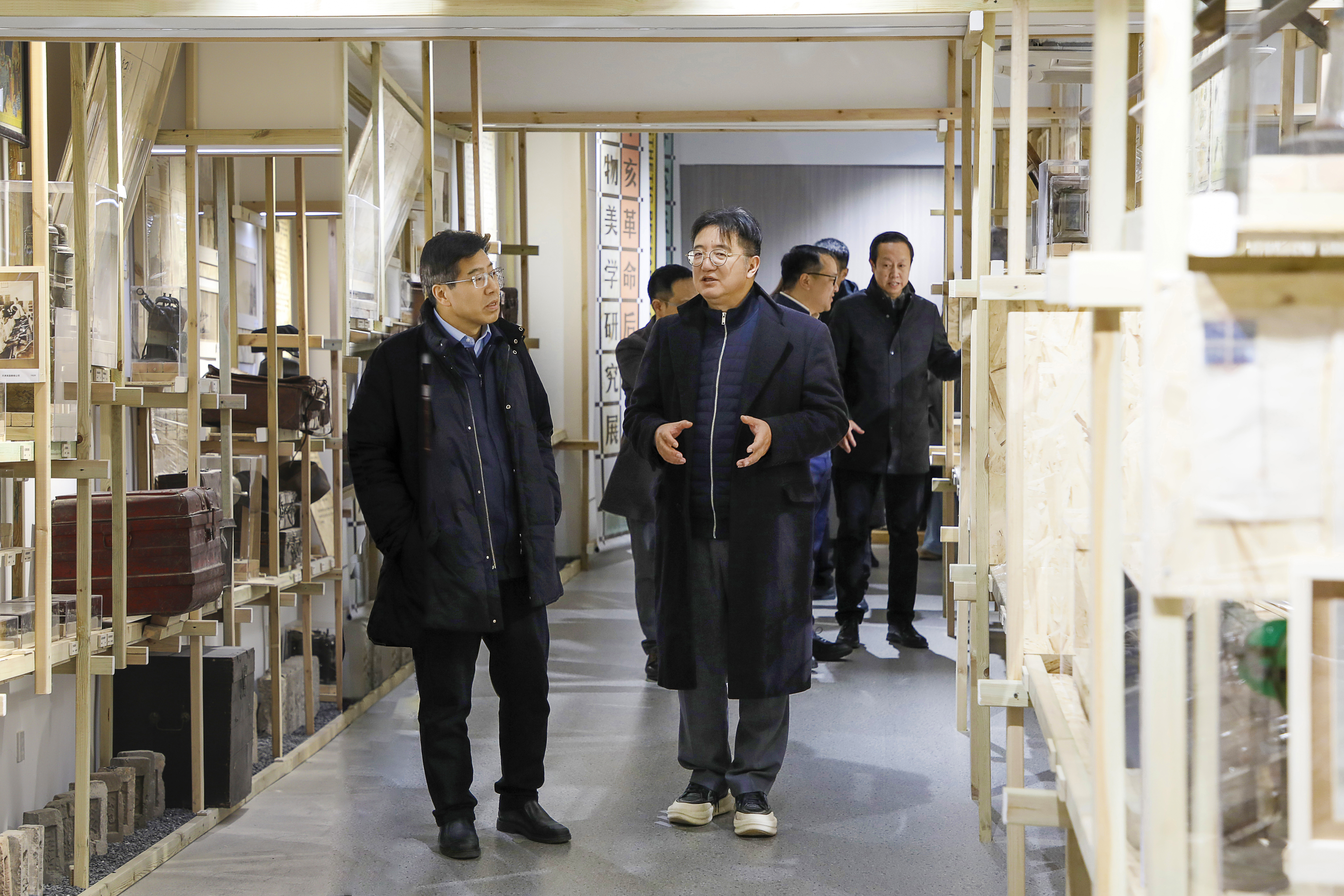 会前,彭双阶一行在校领导陪同下,实地参观了学校美育长廊、公共艺术实验中心及辛亥革命后风物美学展,了解了我校在艺科融合、校园文化建设和实践育人等方面取得的特色成果。