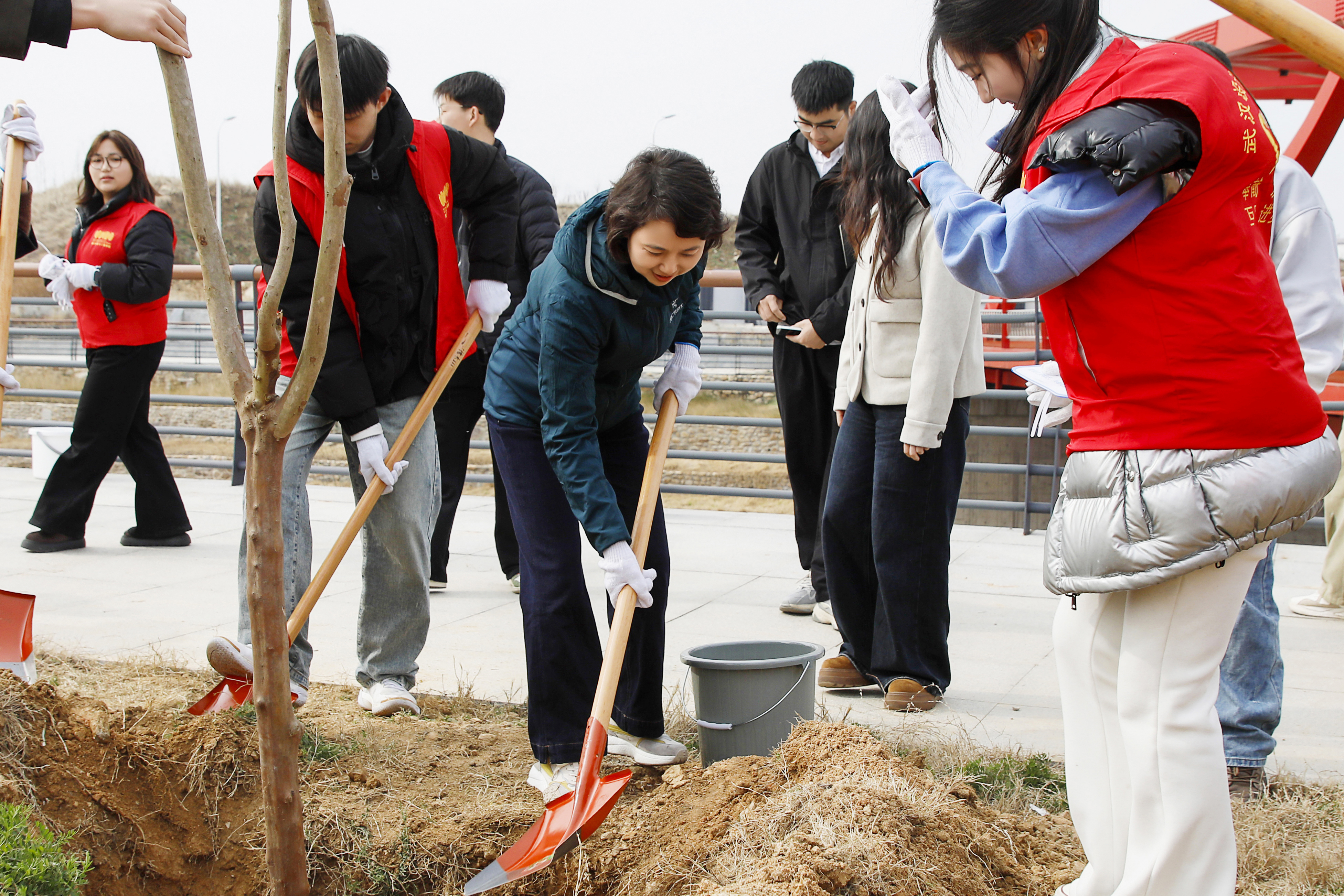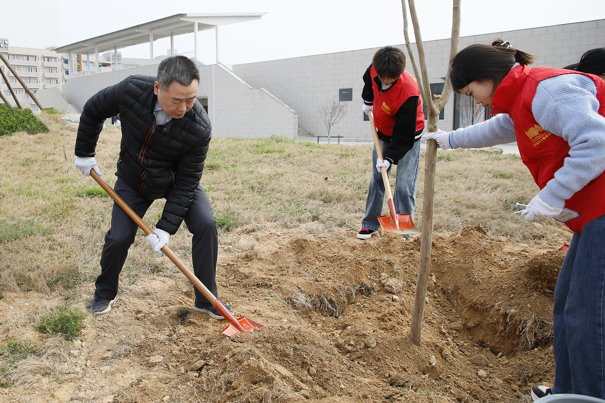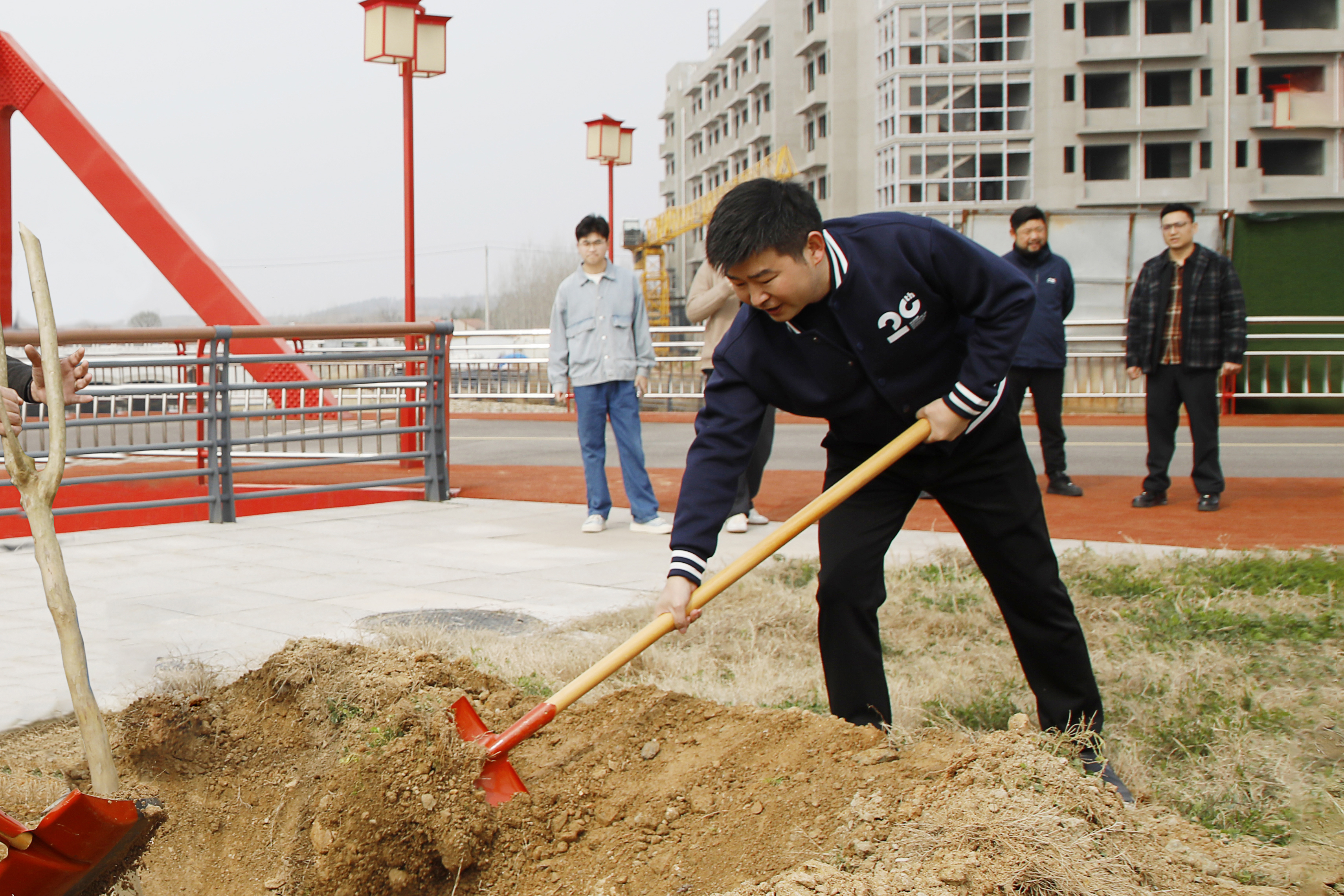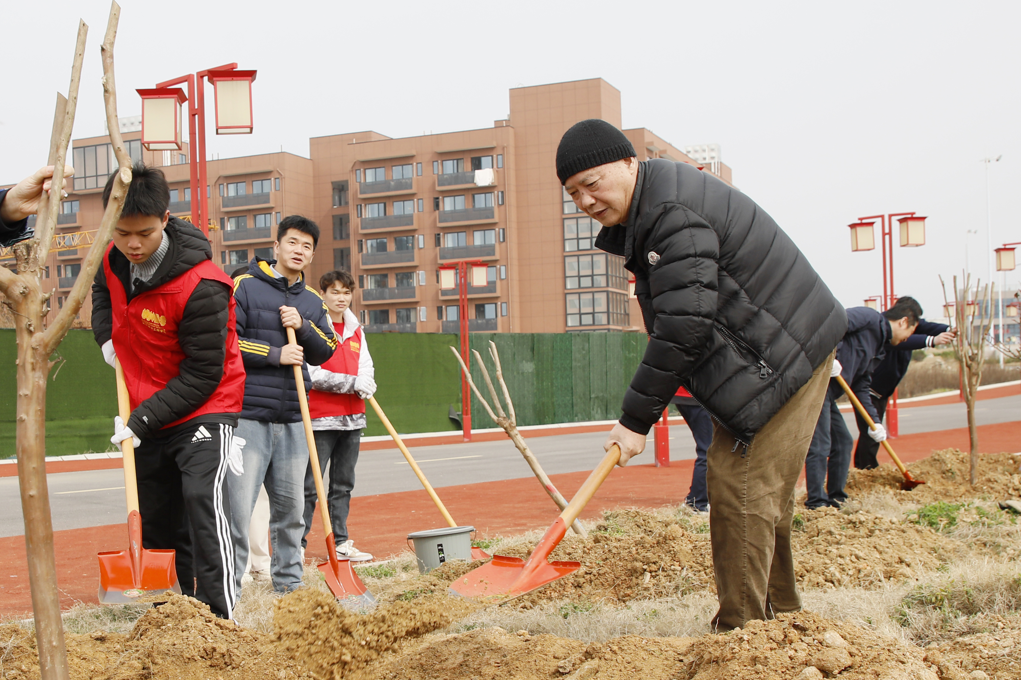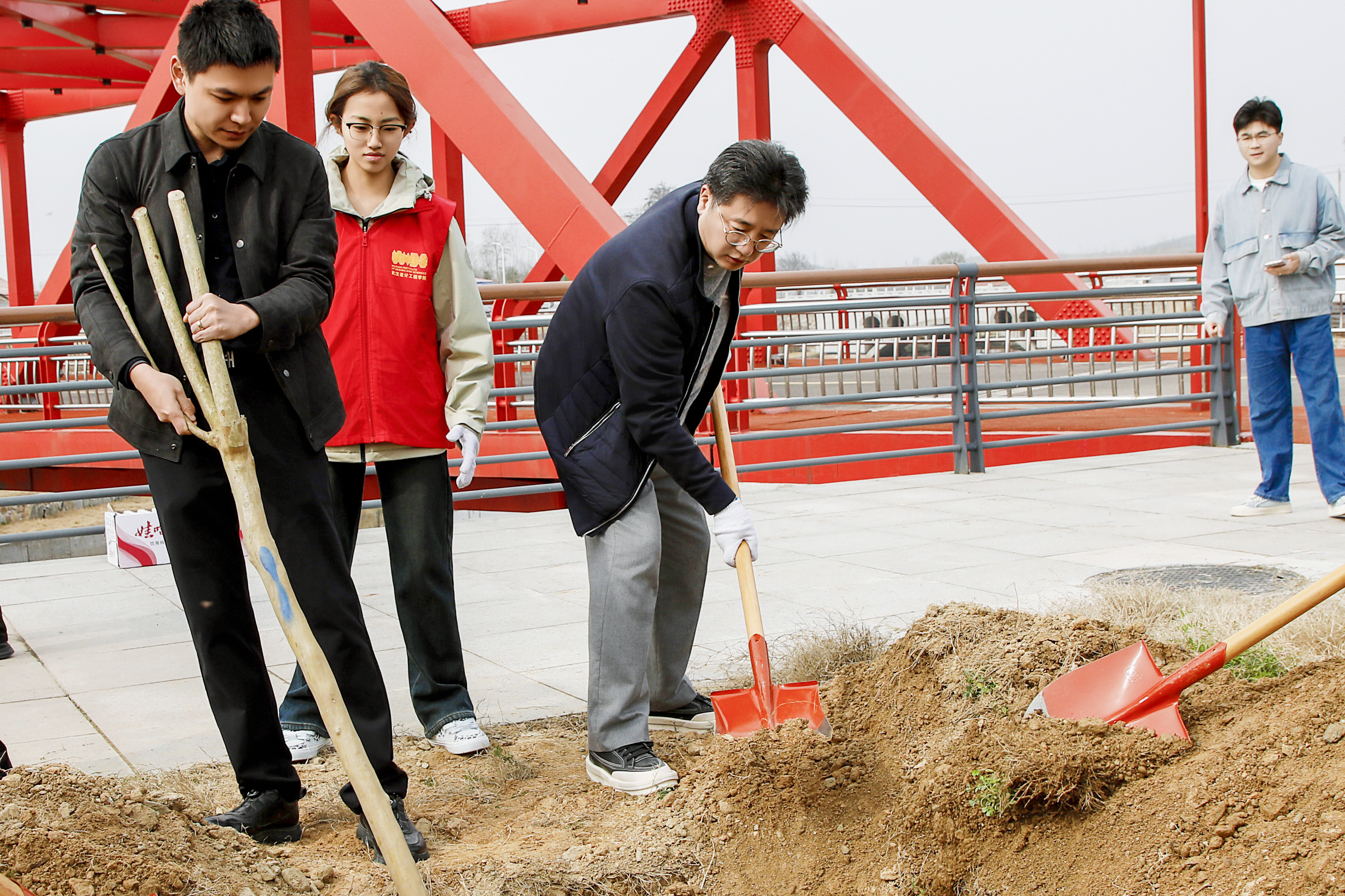 植树现场秩序井然,热情高涨。程凡等校领导率先垂范,或挥锹铲土,或培土围堰,每一个动作都细致认真、一丝不苟。大家分工协作、配合默契,扶苗、培土、栽种、浇水......一株株紫薇新苗扎根沃土、迎风挺立,为初春的红安校区增添了盎然生机。植树间隙,校领导们不时与身边师生亲切交流,了解大家的学习生活情况,勉励同学们要像树苗一样向下扎根、向上生长,在勤学笃行中锤炼品格、成长成才。
