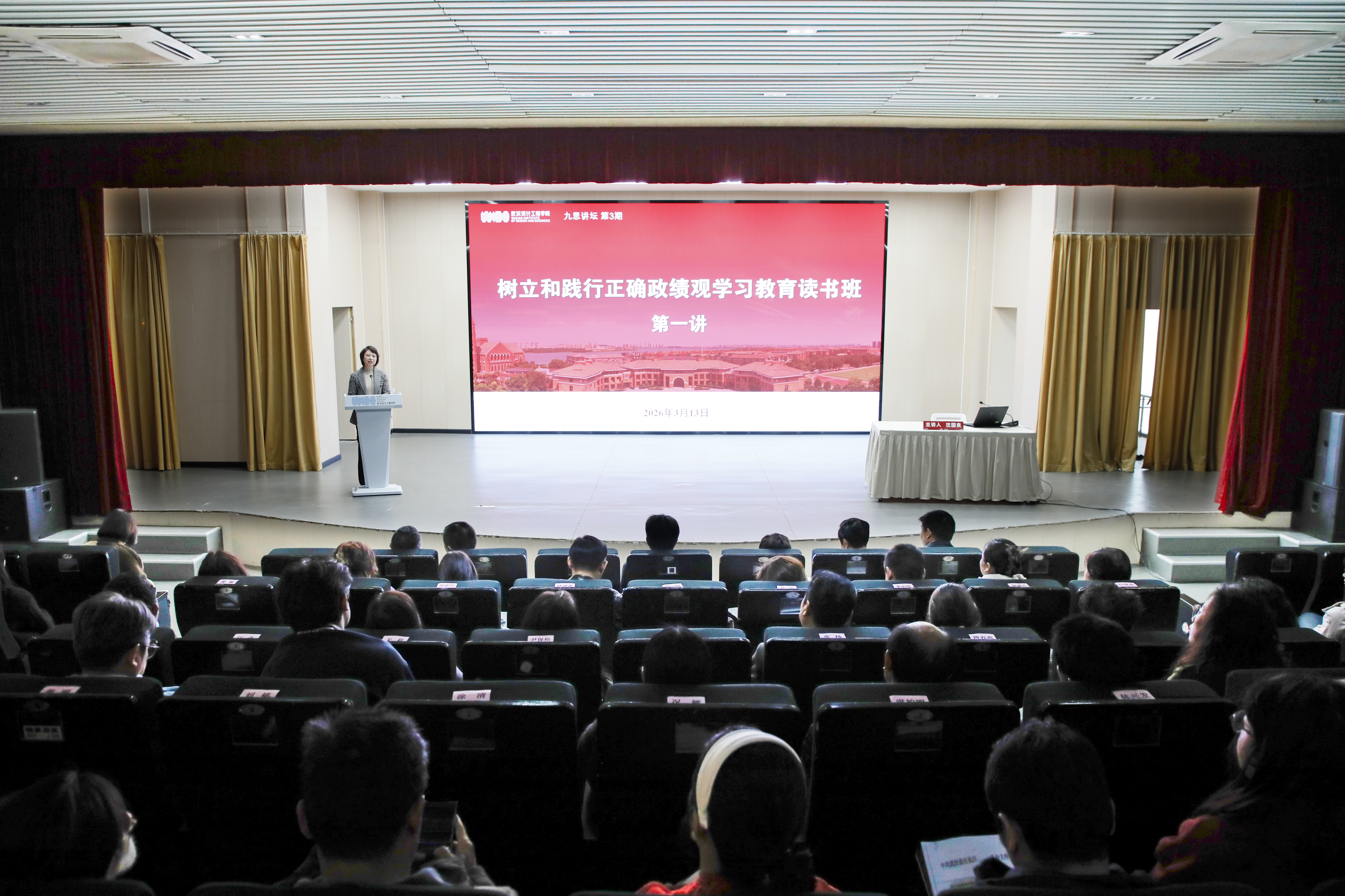 本网讯(记者 吴茹梖)3月13日,我校树立和践行正确政绩观学习教育读书班在咏归小礼堂开班,并举行第一次学习。董事长程凡、党委书记王长华,校长龚少平,副校长张丽娟、徐拥华、邱朝坤出席活动。学校教育教学关键要素改革小组常务副组长、高级科学顾问沈国良以《科技产业变革对教育体系的影响探讨》为题作报告。