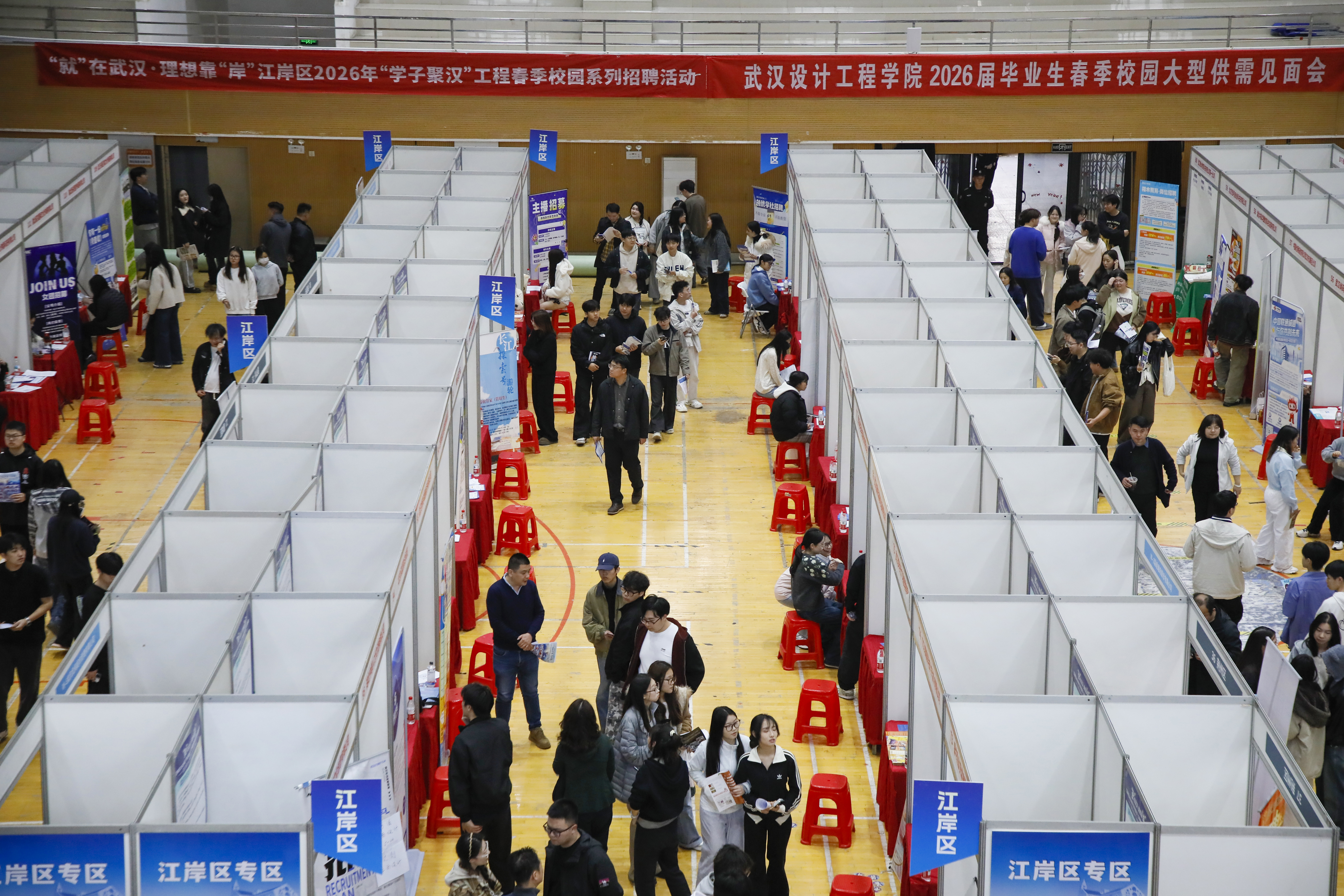 本网讯(通讯员 叶帆)3月25日下午,我校2026届毕业生春季校园大型供需见面会在大学生活动中心顺利举办。本次招聘会由湖北省高等学校毕业生就业指导服务中心指导、学校承办,吸引了全国各地158家知名企业参会,共带来6500余个优质岗位,岗位覆盖艺术设计、影视传媒、食品生物、金融贸易、信息技术、教育培训等多个行业领域,为毕业生搭建起高效的就业对接平台。