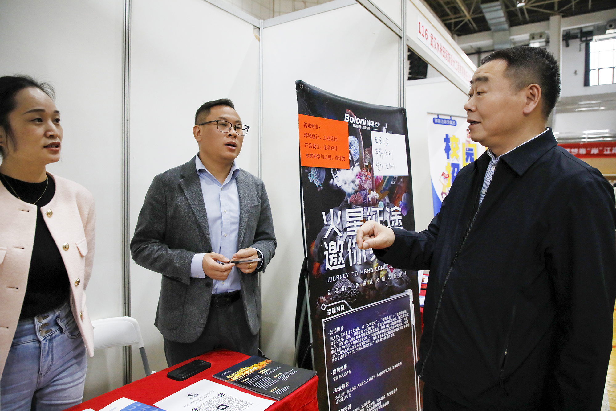 本次参会企业阵容亮眼,湖北长江广电广告有限公司、TCL智能科技(宁波)有限公司等50余家国有企业、上市公司及三资企业踊跃参与,武汉市江岸区企业也组团进校揽才。招聘会现场气氛热烈,多家企业代表对我校毕业生扎实职业素养和过硬专业能力给予高度评价。湖北省石花酿酒股份有限公司招聘负责人对学子们的专业能力与综合素质表示肯定;岚图汽车科技股份有限公司招聘负责人还寄语毕业生,珍惜求职机会,自信展现个人特长与核心竞争力,争取实现最佳匹配。