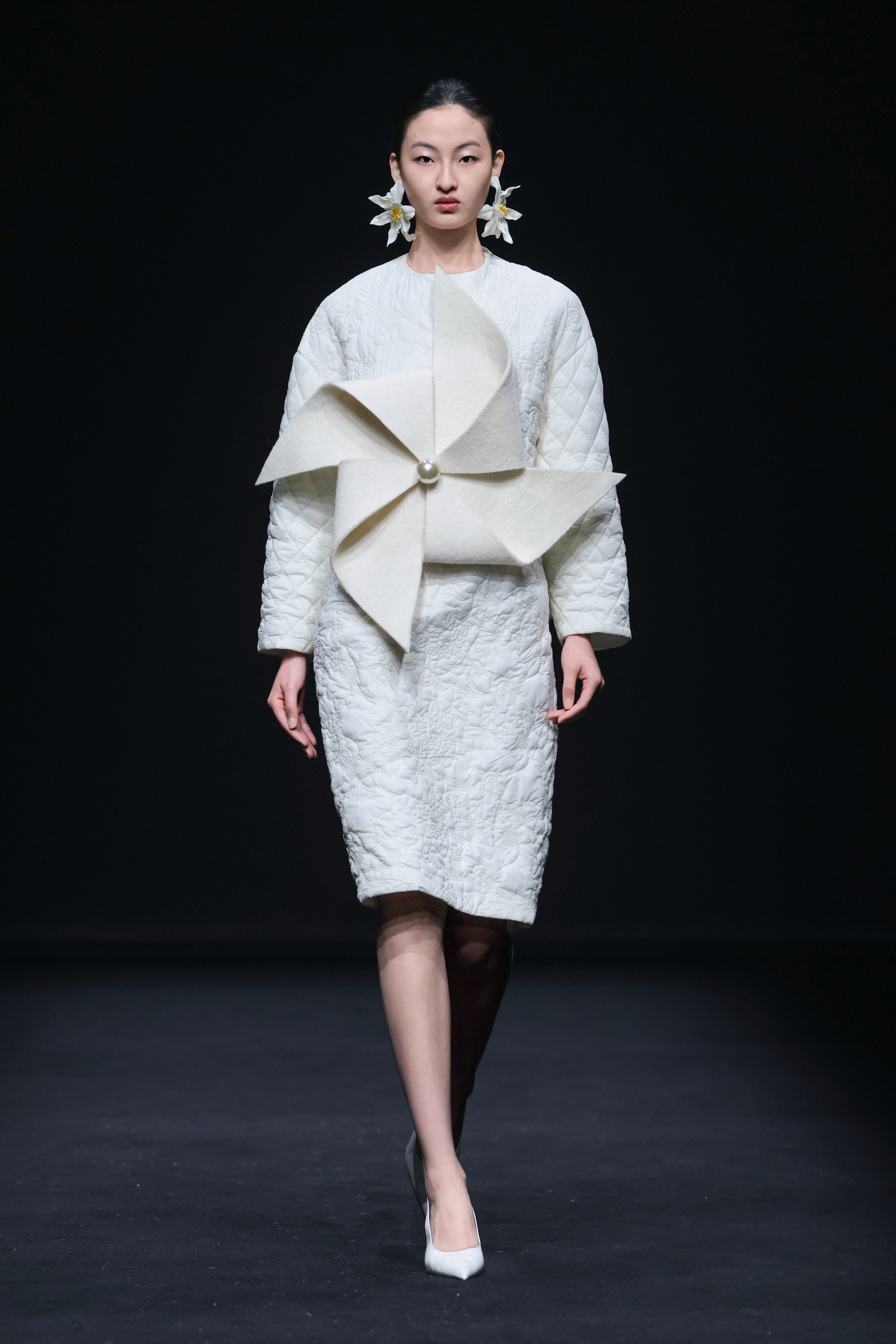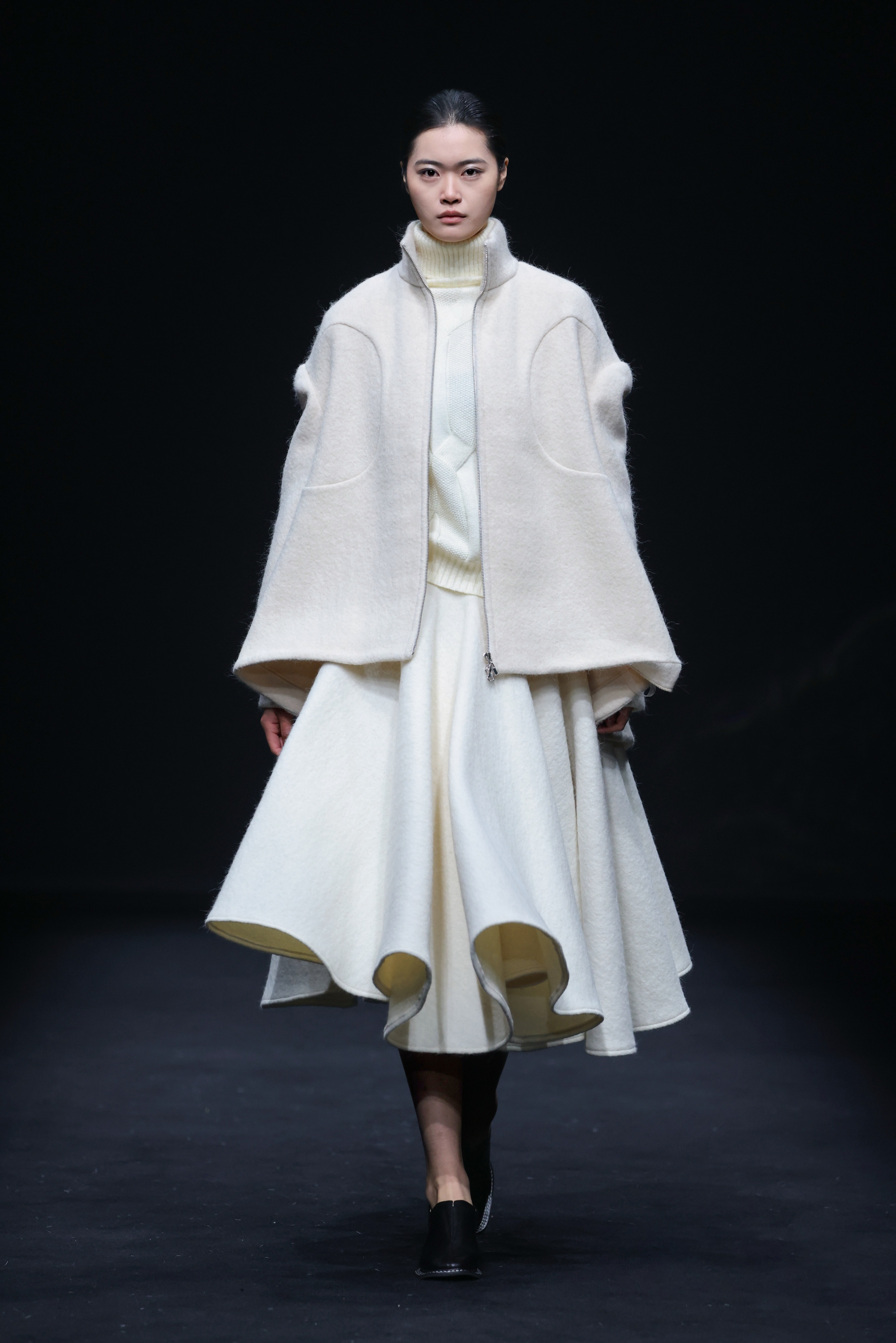 值得一提的是,该系列完整的创作过程已同步转化为服装设计专业的教学案例,实现从秀场到课堂的有效反哺。包蕾将秀场背后的设计逻辑、工艺难点与市场考量融入日常教学,让学生在真实的产业语境中体悟“时尚的温度”与“设计的价值”。