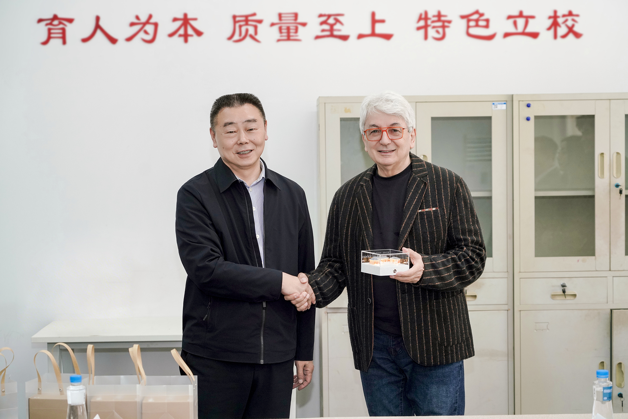 座谈会上,龚少平向代表团详细介绍了我校的办学概况、学科专业特色、人才培养成果及国际化办学发展规划,系统说明了学校的办学实力与发展愿景。Braccchi Luigi则介绍了意大利布雷西亚LABA美术学院的办学历史、专业优势、教学理念及国际交流合作成果。双方围绕艺术教育融合、校际合作等内容深入交流,并互赠纪念礼品、合影留念。