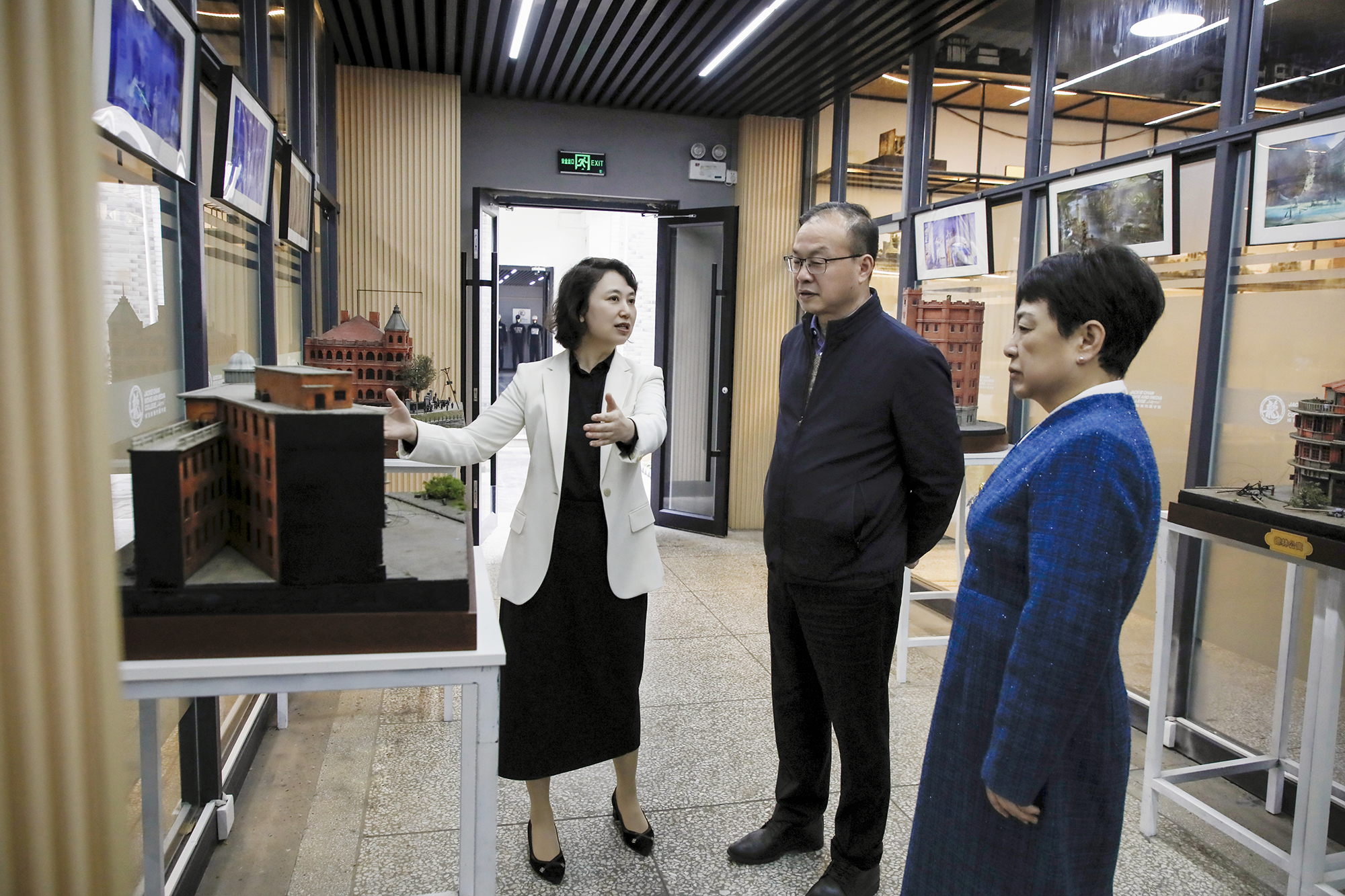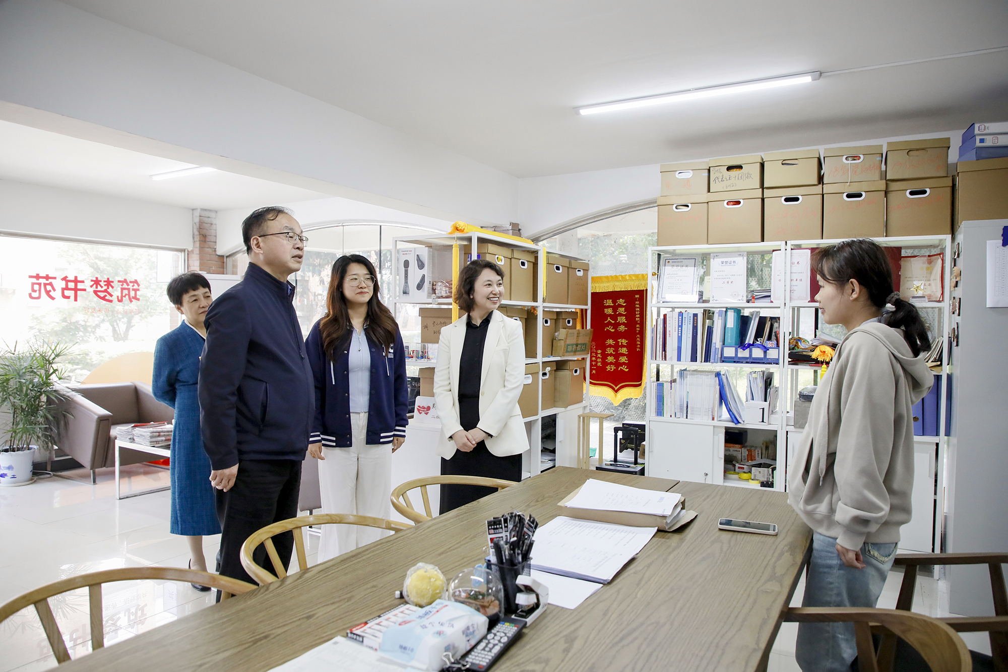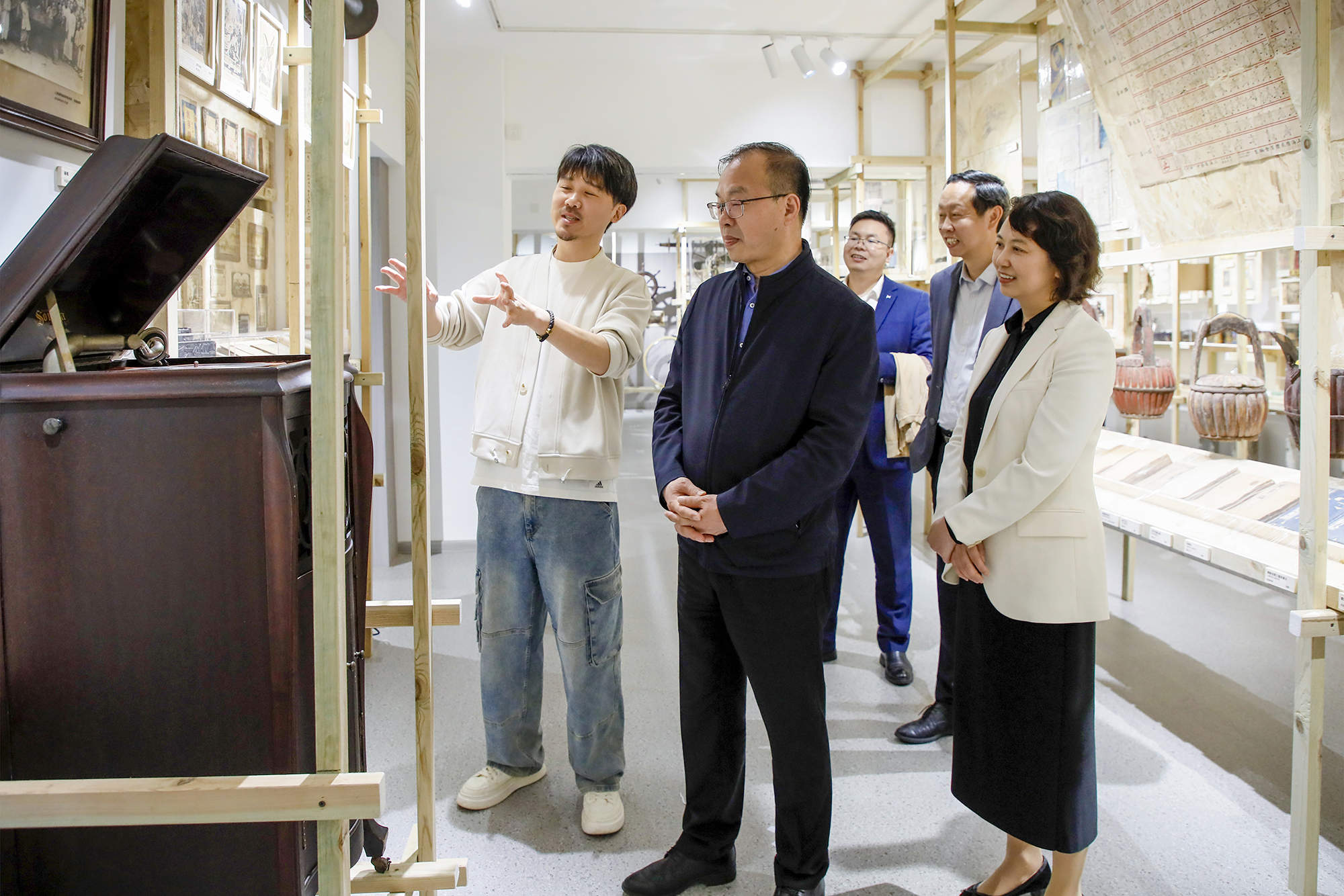 俞亚东在王长华等陪同下,实地走访参观了学校“一院一品一长廊”美育长廊、辛亥革命后(1912-1949)风物美学展等,并召开座谈会,详细了解学校党的建设情况。