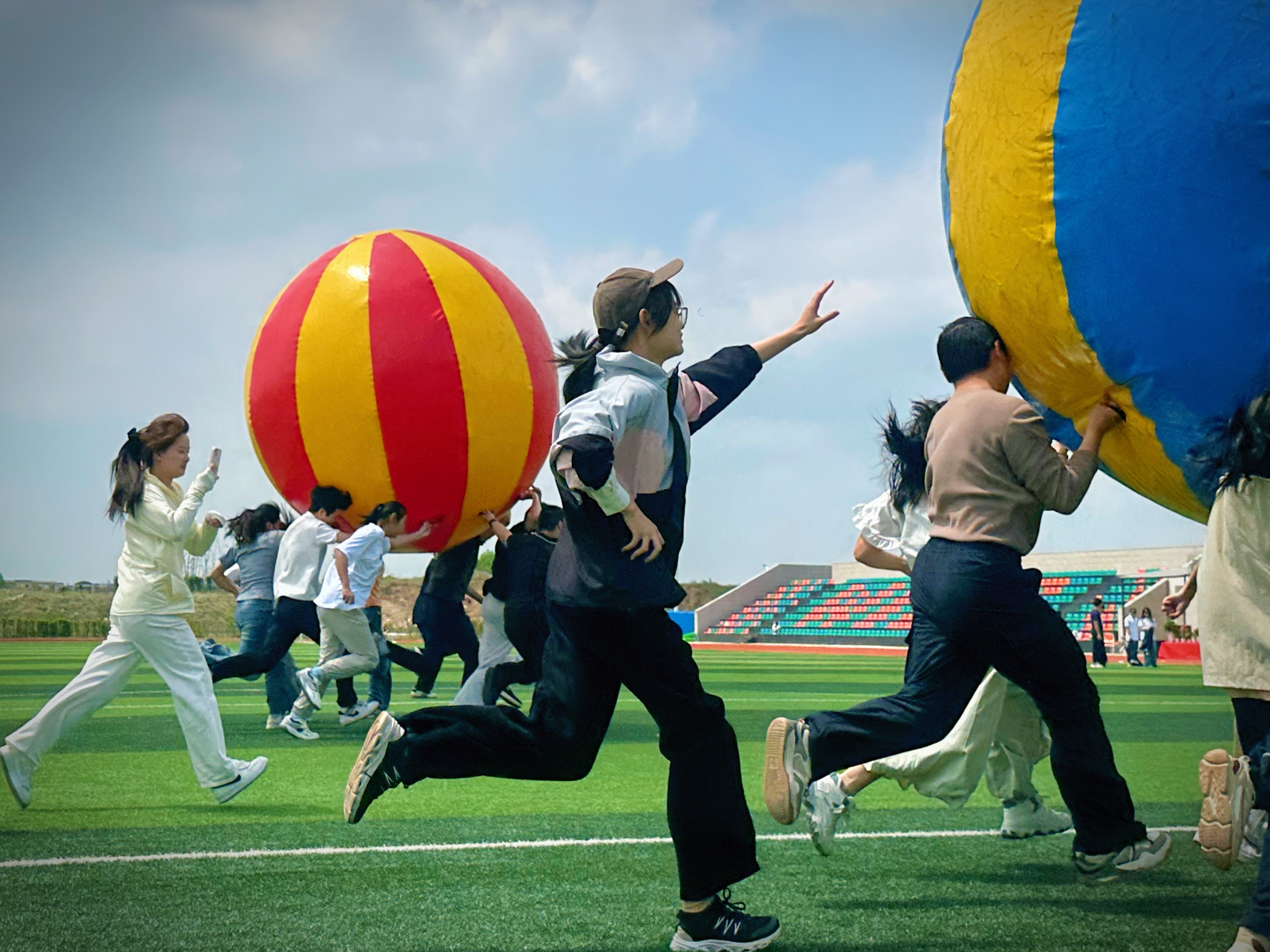 赛场另一侧,趣味项目同样热闹非凡。毛毛虫竞速步调一致,尽显团队默契;鸿运彩球合力同心,携手奔向终点;同舟共济、车轮滚滚凝聚协作力量,彰显青春同心同行的风采。