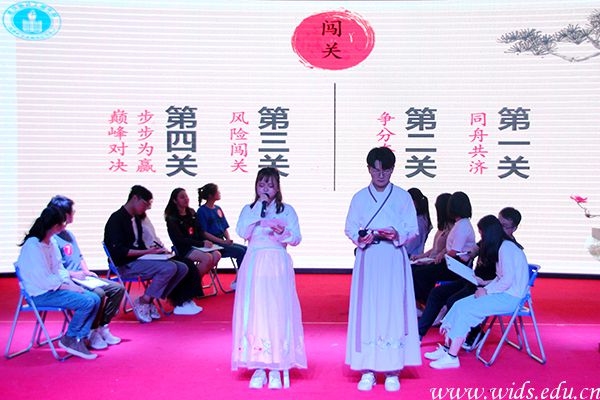 本届赛事由我校公共基础课部主办,教务处学生教学信息中心承办。在经过前几轮的笔试预赛后,共有12名进入到当晚的决赛。决赛分为小组比拼与个人比拼两个环节。12名选手随机两两组合成6个小组,在依次进行“同舟共济”定量积分赛、“争分夺秒”定时积分赛后,积分落后的3个小组被淘汰。剩下的3组共6人进入到个人比拼环节。比赛内容为古诗词和古典文化常识,涉及面很是广泛,十分考验选手的知识储量和文学素养。